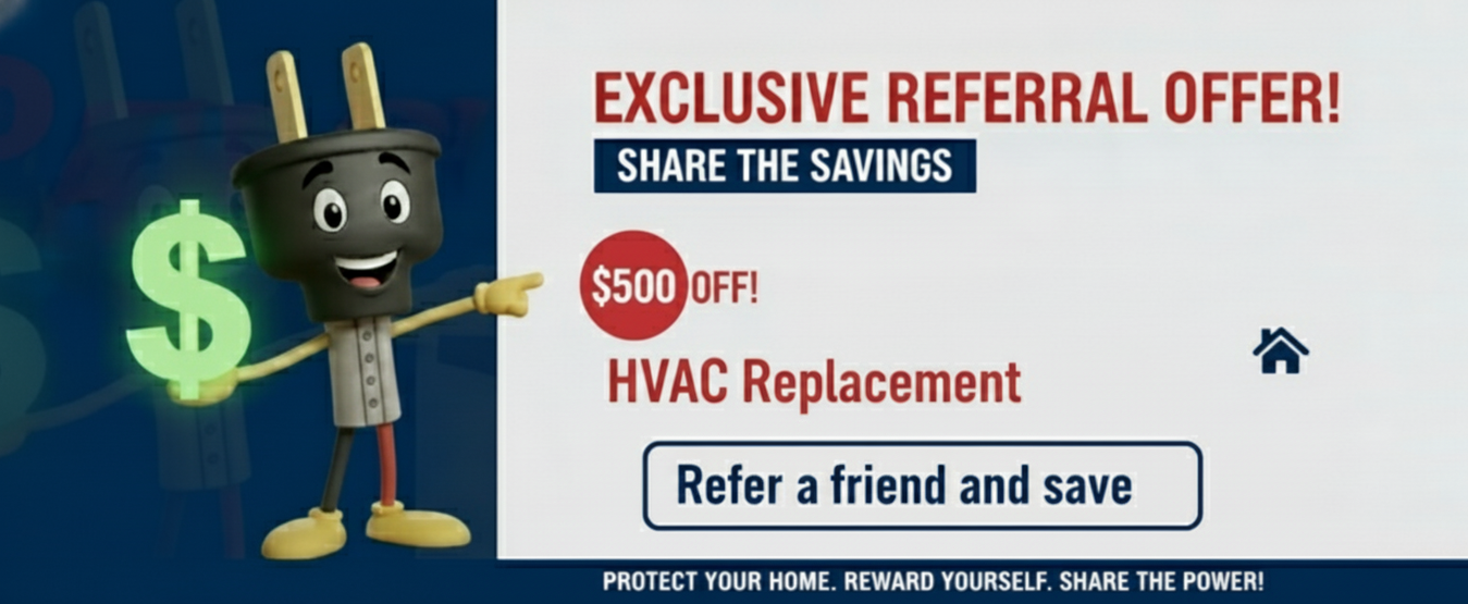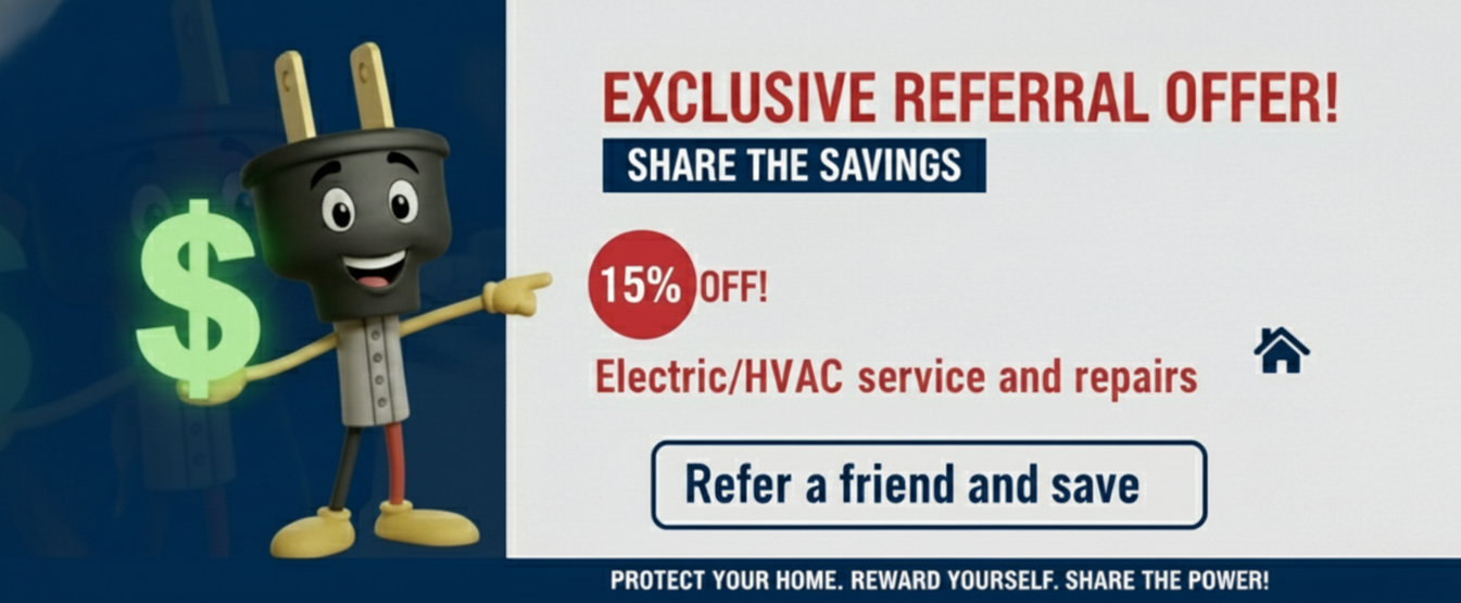 - 15% off any service and repair invoice (not applicable to installation of hvac system, generators, electrical service or panel upgrades, and any major installation/replacements)